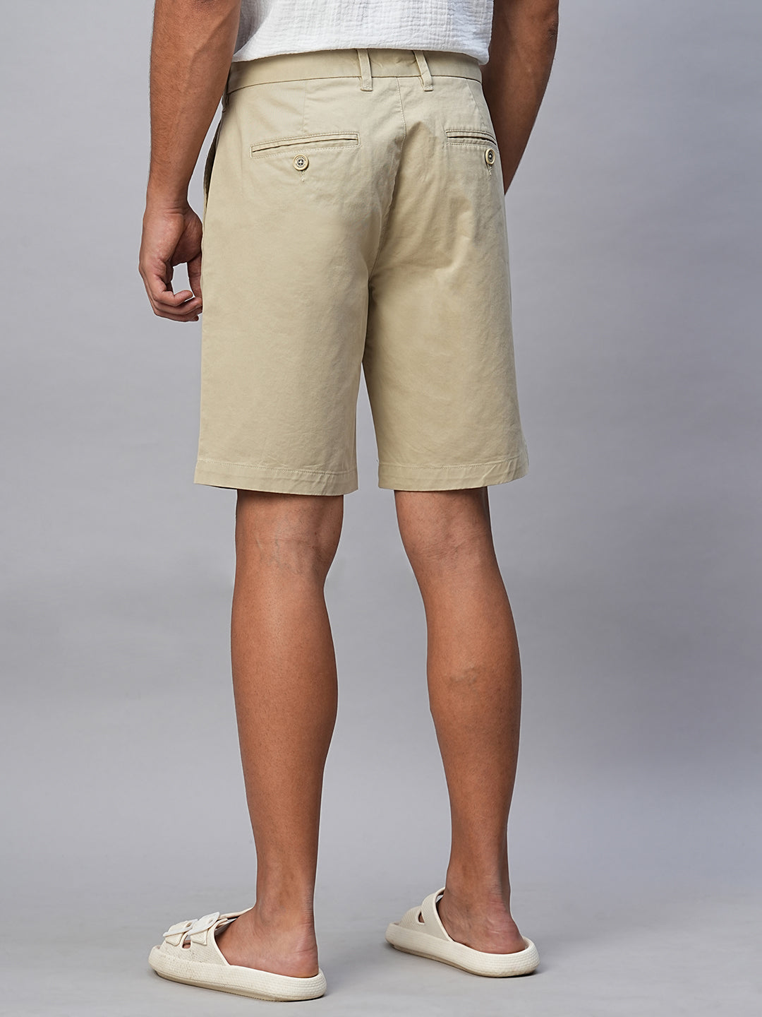 • Men's Khaki Cotton Lycra Regular Fit Shorts