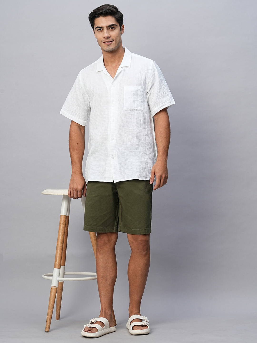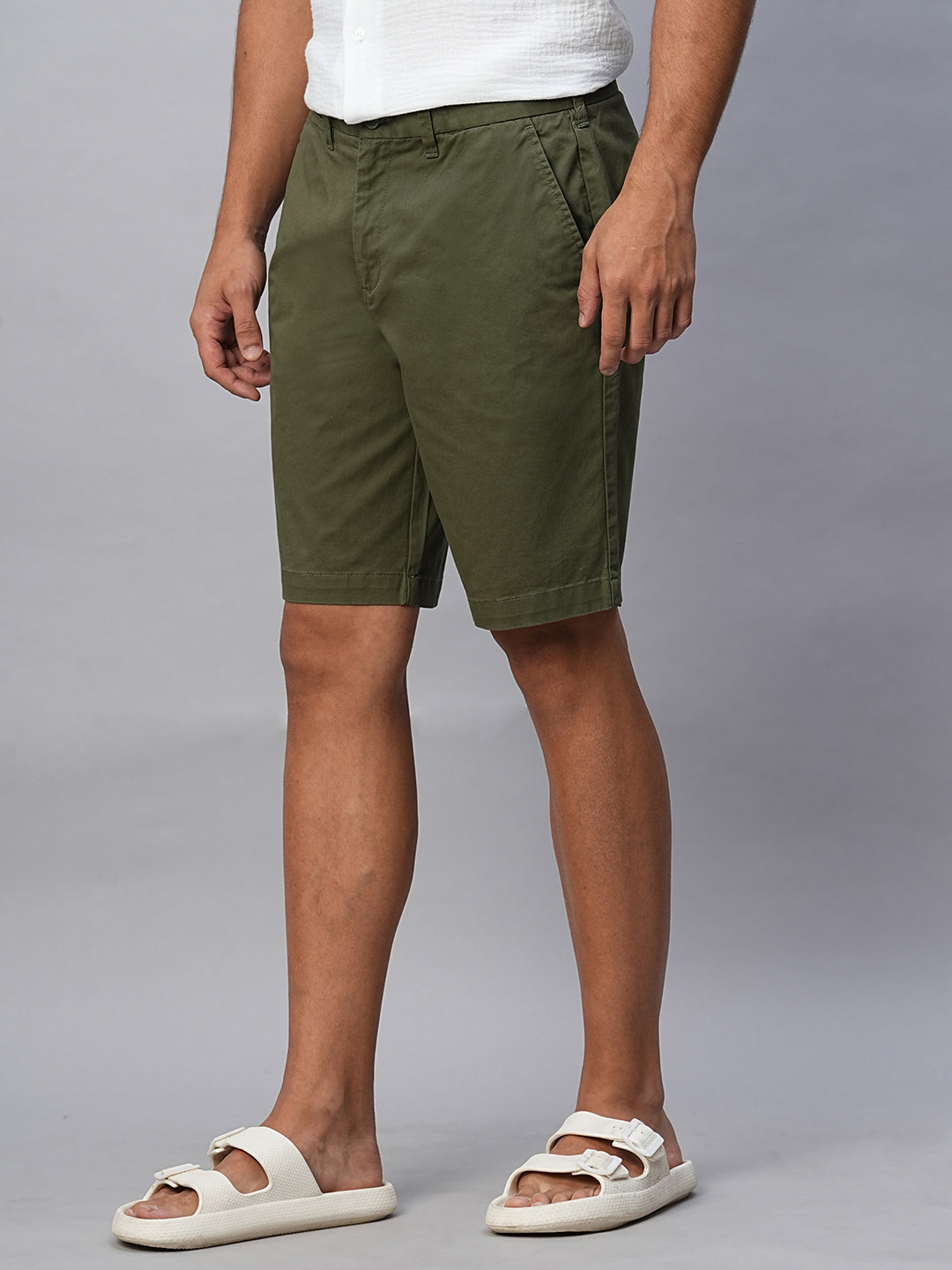 Men’s Olive Cotton Lycra Regular Fit Shorts