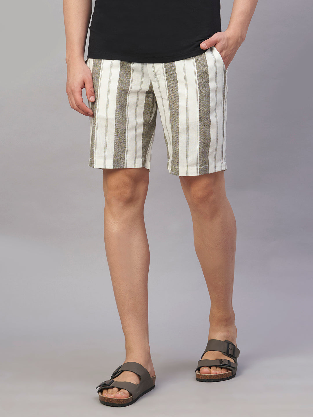 Men’s Olive Cotton Linen Regular Fit Shorts